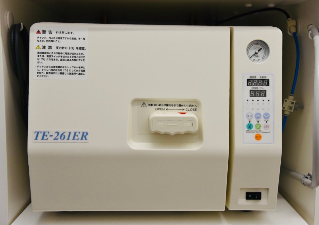 最新型のオートクレーブ滅菌器による衛生基準を満たした管理で、院内での交叉感染を防ぎます