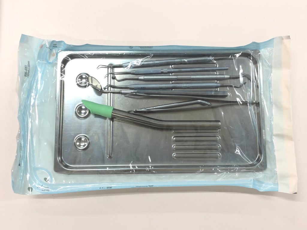 治療時に使用するタービン・エンジン(切削器具)等やその他の機械・器具は、1本1本患者様ごとに消毒済みの清潔な滅菌パックを用い、診察で着用した手袋、紙コップ、エプロンは使い捨てることによって感染を防ぎます